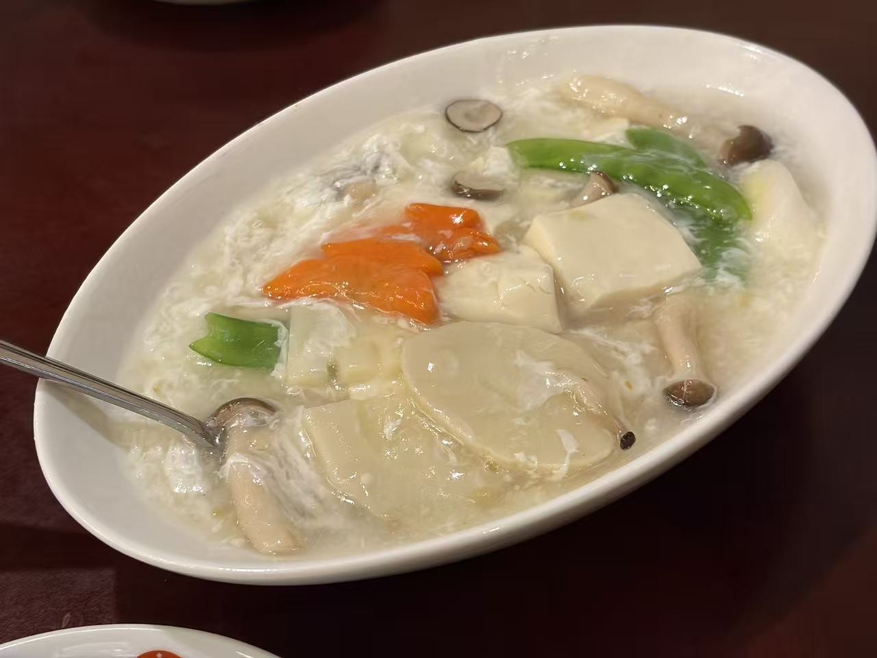 这些饭菜的味道,和我现在所生活的中国菜相比,有一些年代久远的感觉。也许是北方的饭菜勾芡面糊糊的做法,也许是老一辈喜欢肥肉和油腻的吃法,有一些不合胃口。偏甜,偏油,带一些腻。